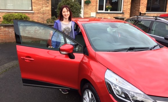 based at The Royal Victoria Hospital, Belfast taking delivery of her new Renault Clio Dynamique Nav 1.2 75 in flame red