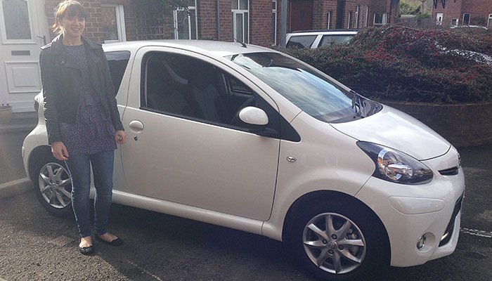 of Grove Health & Well Being Centre taking delivery of her new Toyota Aygo Mode 1.0 VVTi 3 door sourced through Staff Services.