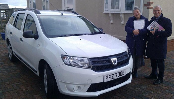 from Groomsport taking delivery of her new Dacia Logan MCV Ambience 1.2 16V from Winston Stewart of Staff Services.